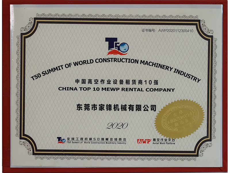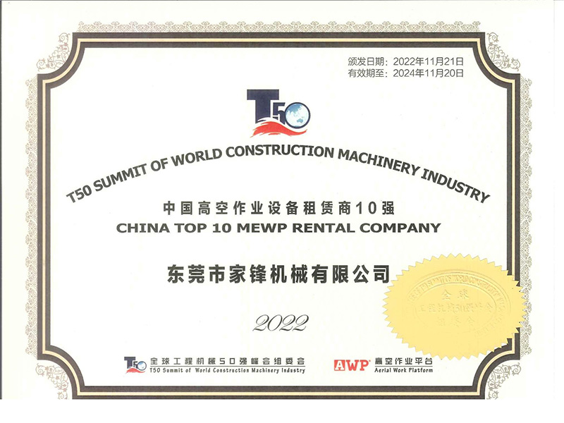 東莞市家鋒機(jī)械有限公司成立于2016年,是專業(yè)的高空作業(yè)平臺(tái)租賃、銷售服務(wù)商,擁有徐工、中聯(lián)、吉尼、捷爾杰等國(guó)內(nèi)外知名品牌的高空作業(yè)設(shè)備八千多臺(tái),連續(xù)四屆榮膺“中國(guó)高空作業(yè)設(shè)備租賃商十強(qiáng)企業(yè)”及“中國(guó)高空作業(yè)平臺(tái)租賃業(yè)十大品牌”,并于2021年首次榮膺“中國(guó)工程機(jī)械租賃商十強(qiáng)”,是立足華南、輻射全國(guó)、規(guī)模大、服務(wù)優(yōu),極具競(jìng)爭(zhēng)力和影響力的企業(yè)。短短幾年,已相繼與世界機(jī)械巨頭徐工集團(tuán)、中聯(lián)重科達(dá)成戰(zhàn)略合作。